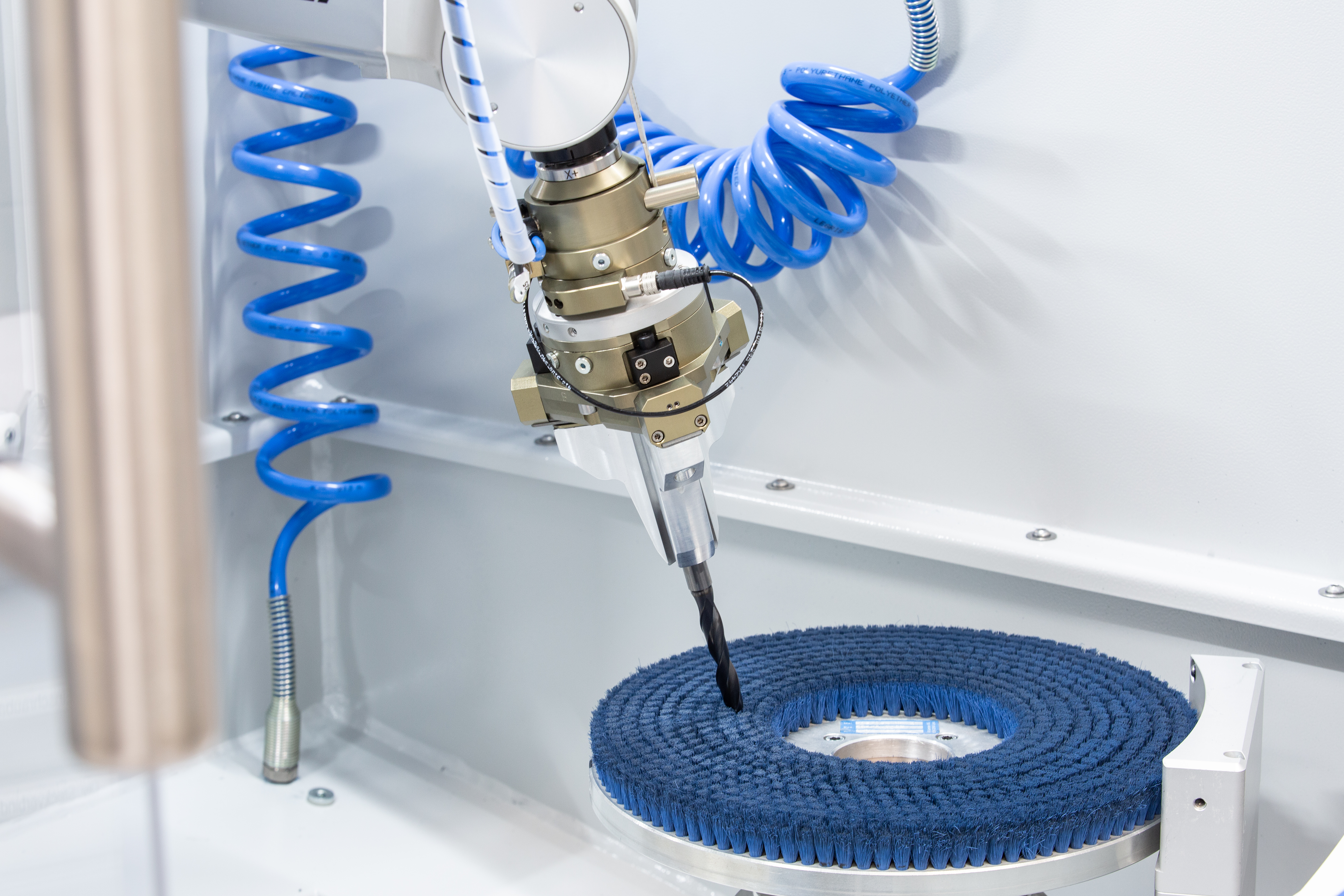Beim Entgraten wird eine Bürste, die entweder mit einem Schleifmittel beschichtet ist oder abrasive Borsten enthält, gezielt über die Schneidkante geführt. Dabei entfernen die abrasiven Partikel überschüssiges Material und formen eine präzise Verrundung, die je nach Prozessparametern von 5 μm bis ca. 200 μm variieren kann.Mehr Infos